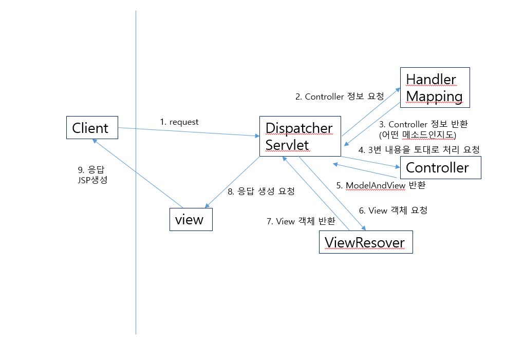 - 요청 처리, DB 관련 코드X, 단순히 화면 출력