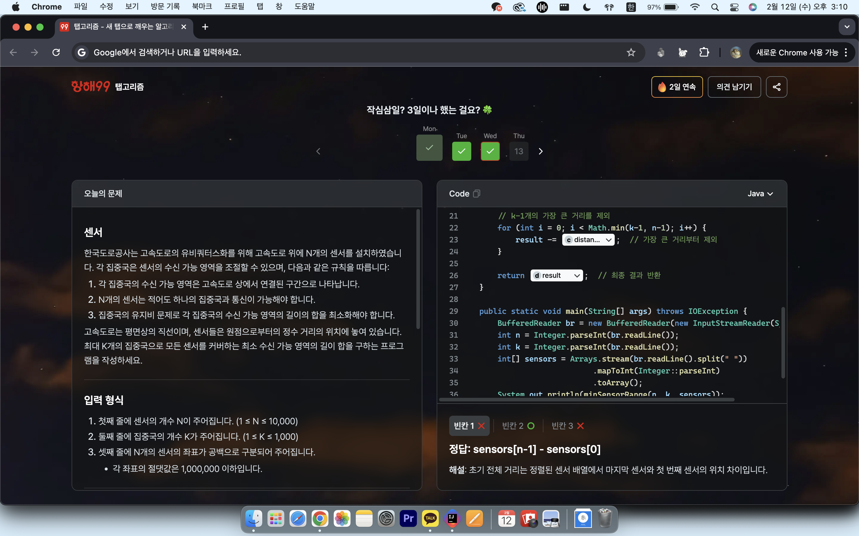 원래 같으면 새탭에 바로가기에 있는 유튜브나 넷플릭스로 빠져서 시간을 갉아먹었을테지만 바로 알고리즘을 보니깐 나도 모르게 집중하게 된다