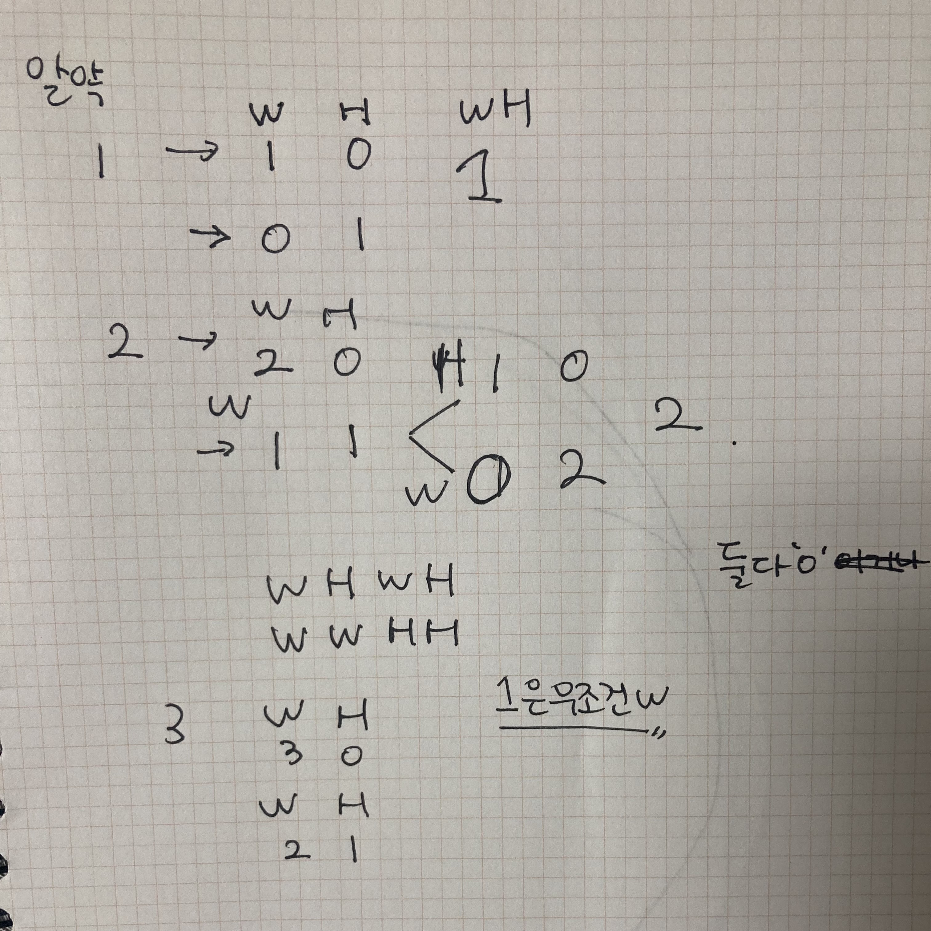 먹는 방법 두가지를 재귀로 들어가서 w, h가 둘다 '0'이면 방법의 수++